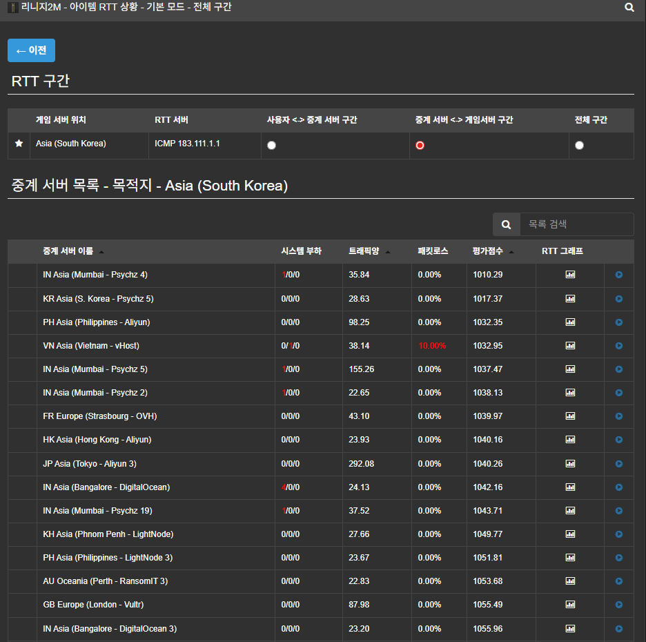 중계 서버<->게임서버 구간이 비정상적으로 핑이 1000대가 전부 넘고.. 무시하고 실행시키면