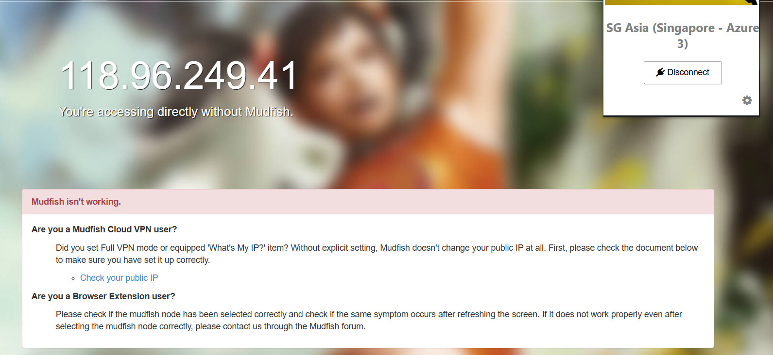 i use mudfish extension on crhome and its already few days since i cannot connect, the extension says i connected but im not connected.pls help