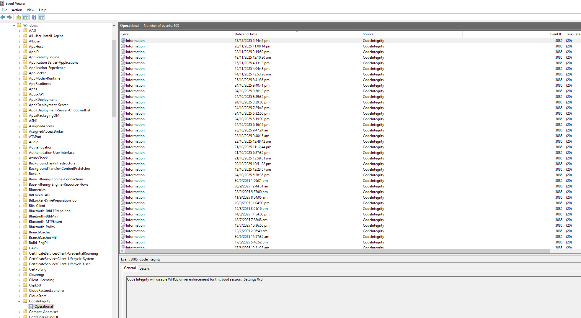 eventvwr.msc, and press Enter.This information will help us pinpoint exactly why the driver is being blocked.