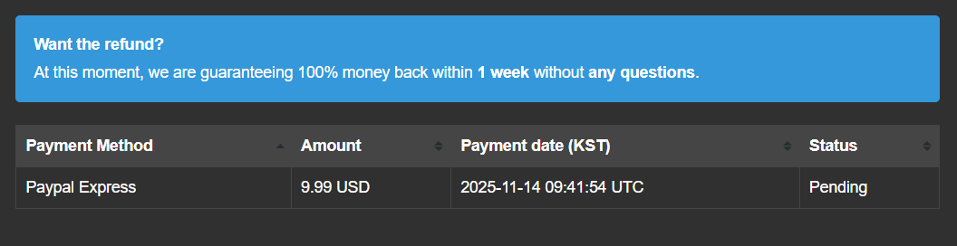 So it’s under Paypal’s review and no refund button availablt to click for your payment. So I think I can handle your refund request when Paypal’s review is completed. Please allow some days until it’s done.