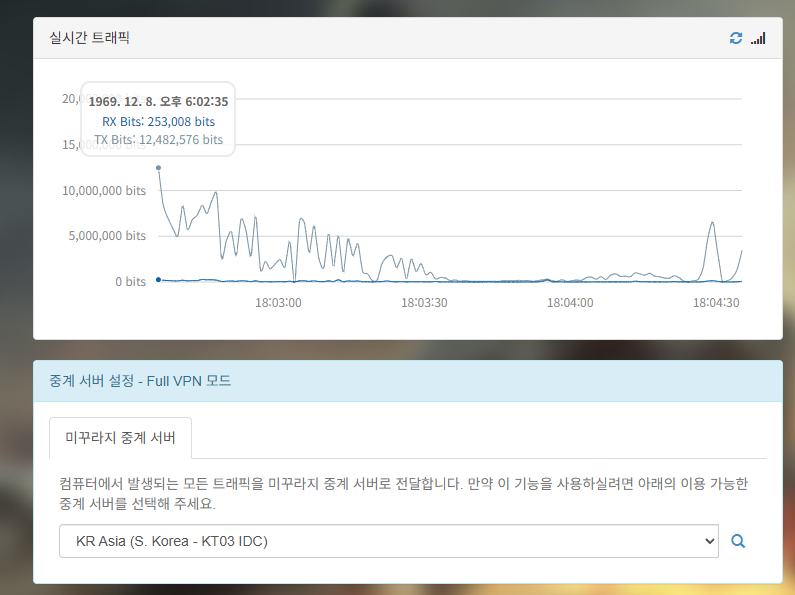 얼마전부터 KT 서버들의 실시간 트래픽이 20M~30M bits 씩 치솟아버려서 이용이 어려운 수준인데… 확인한번 부탁드릴게요..
