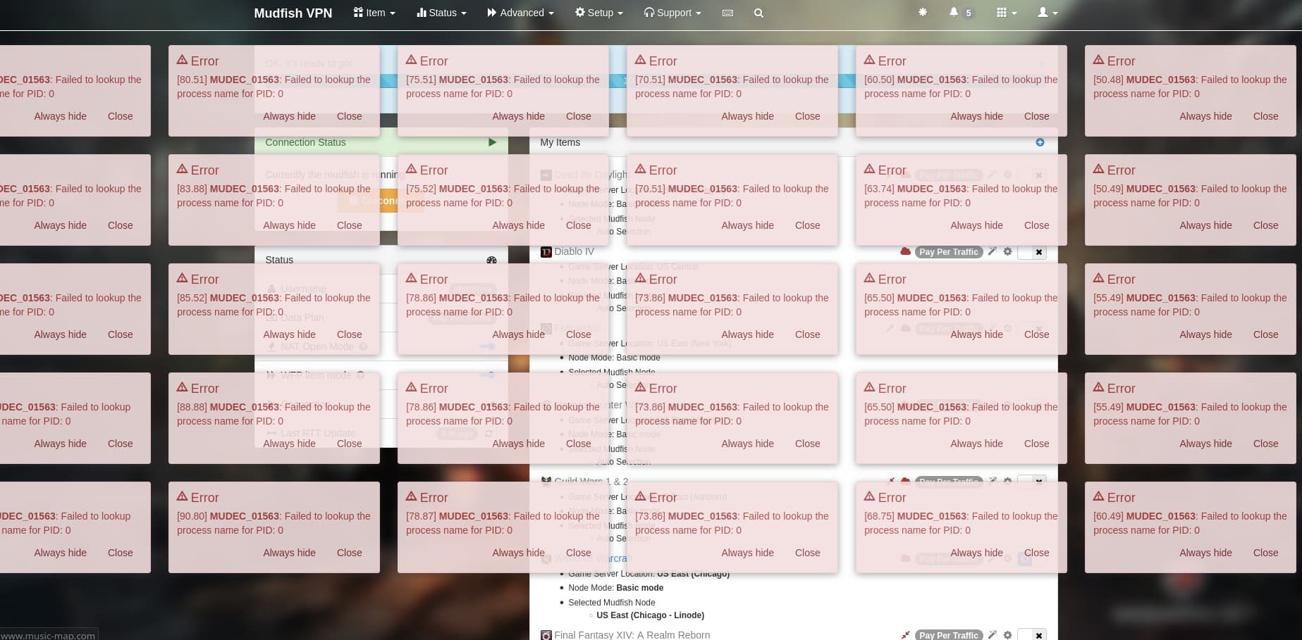 Mudfish is displaying this error MUDEC_01563: Failed to lookup the process name for PID: 0 I don’t know if it affects the connection to the node but I can’t see anything about MUDEC_01563 any ideas how to fix this?