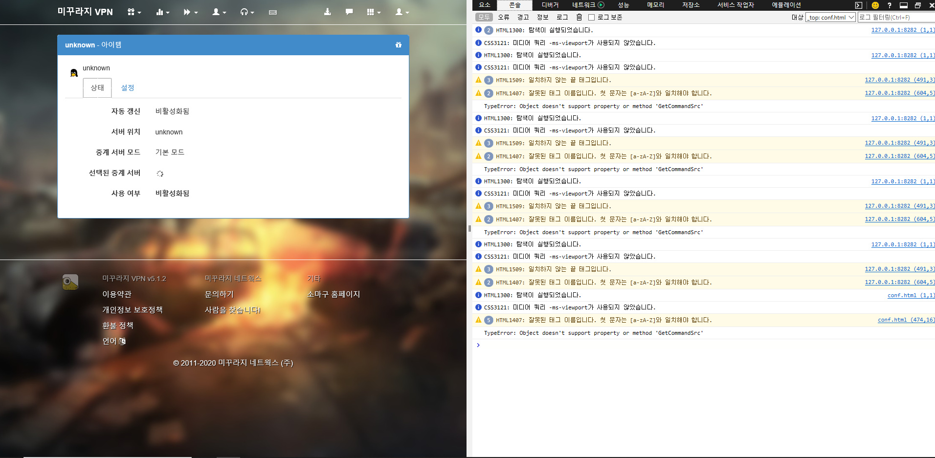 만약 그렇다면 미꾸라지 v5 오류 디버깅 - Kaspersky Internet Security 링크의 내용대로 조치를 취해보시기 바랍니다.