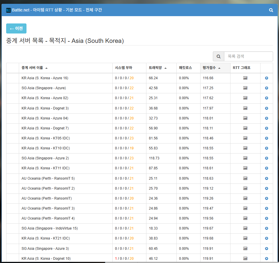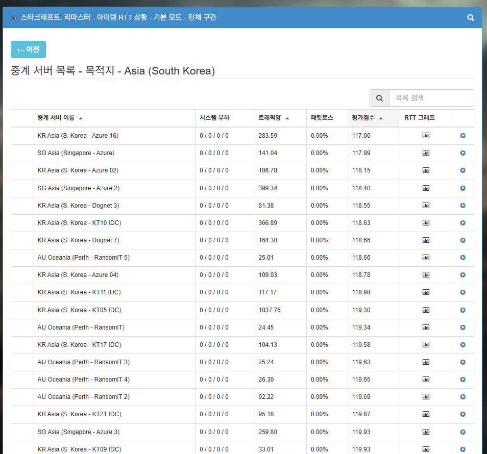 음.. 혹시 지금도 같은 증상이신가요? ㅠ.ㅠ FAQ - 중계 서버 관련 섹션에 따르면, 해당 항목은 혼잡도를 뜻합니다. 먼가 혼잡도 계산이 일시적으로 잘못된 것이 아닐까 추측이 됩니다.